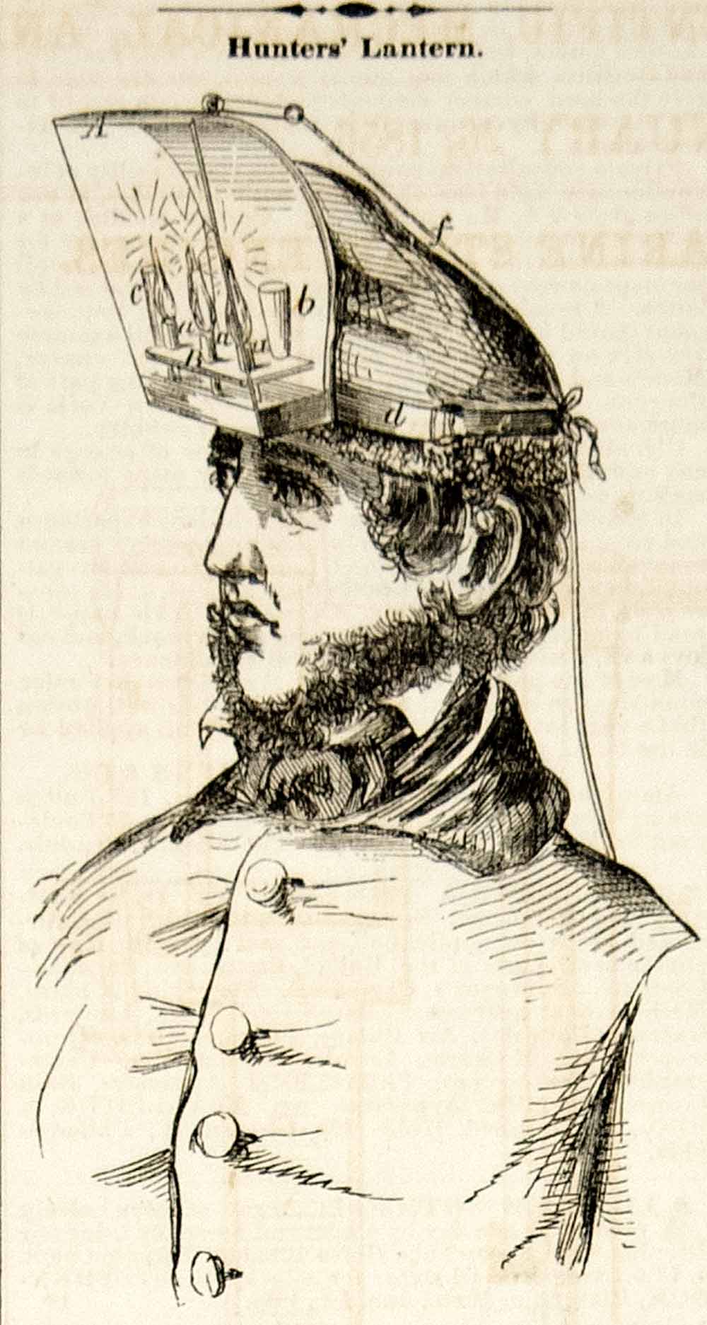 1855 Wood Engraving Hunters Lamp Lantern Deer Shining Hunting Invention YSA2