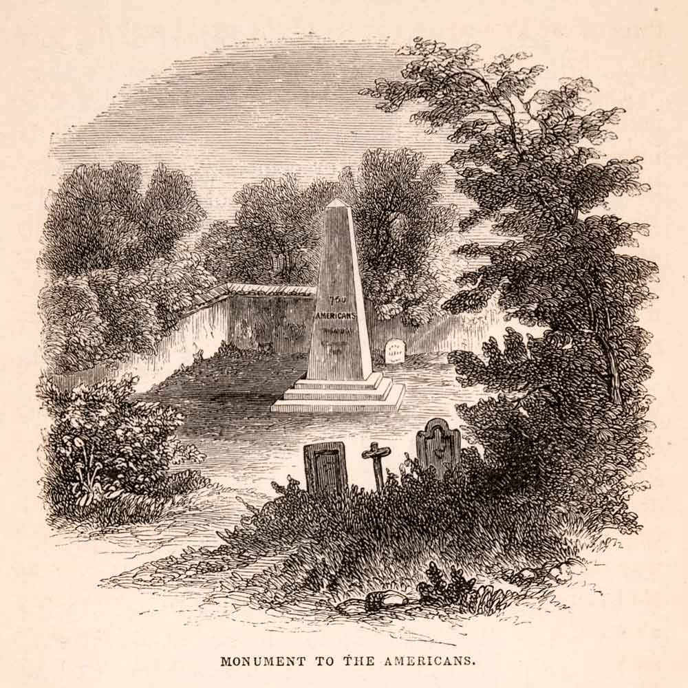 1855 Wood Engraving Mexican American War Cemetery Burial Monument XGMA5