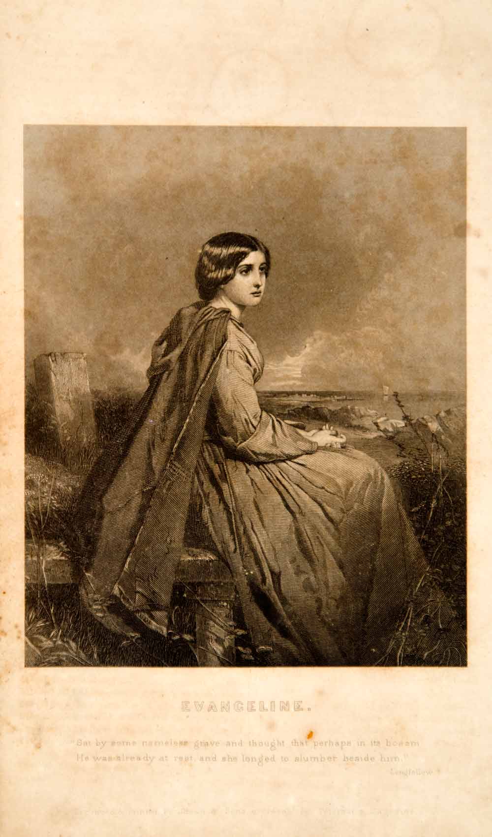 This is an original 1856 black and white steel engraving of a scene from the epic poem by the American poet, Henry Wadsworth Longfellow.