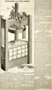 1856 Wood Engraving Antique Cotton Press Agriculture Victorian Invention YSA2