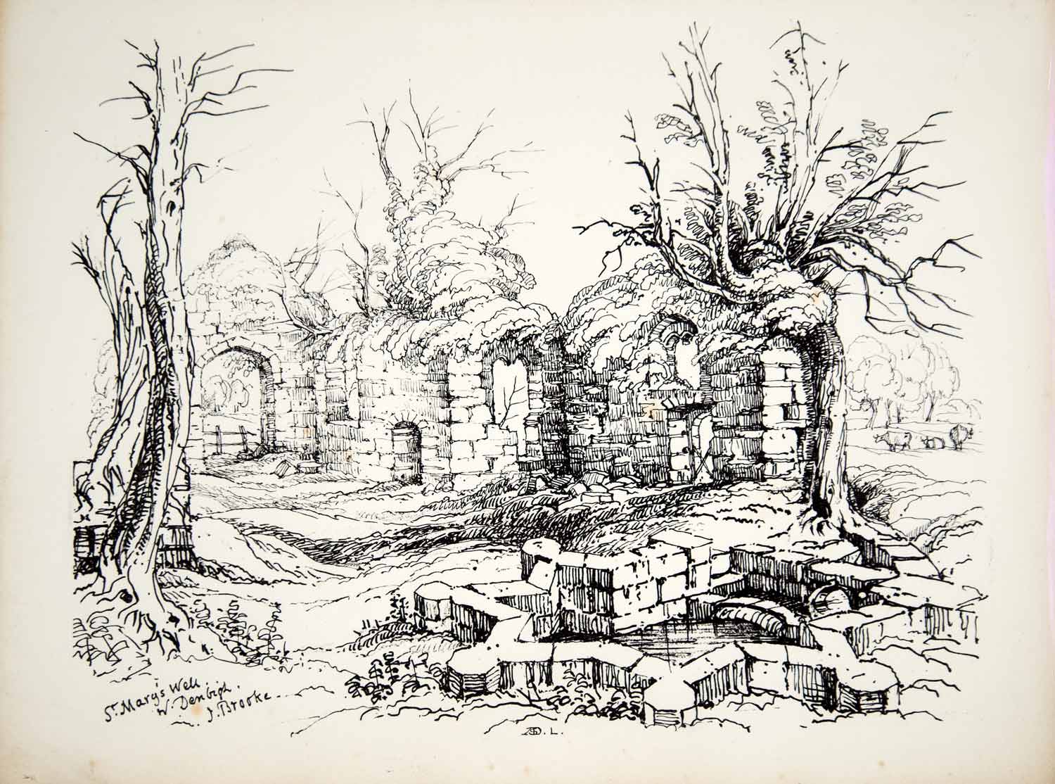 1857 Lithograph J Brooke Art Ffynnon Fair St Marys Well Penrhys Wales UK ZZ2