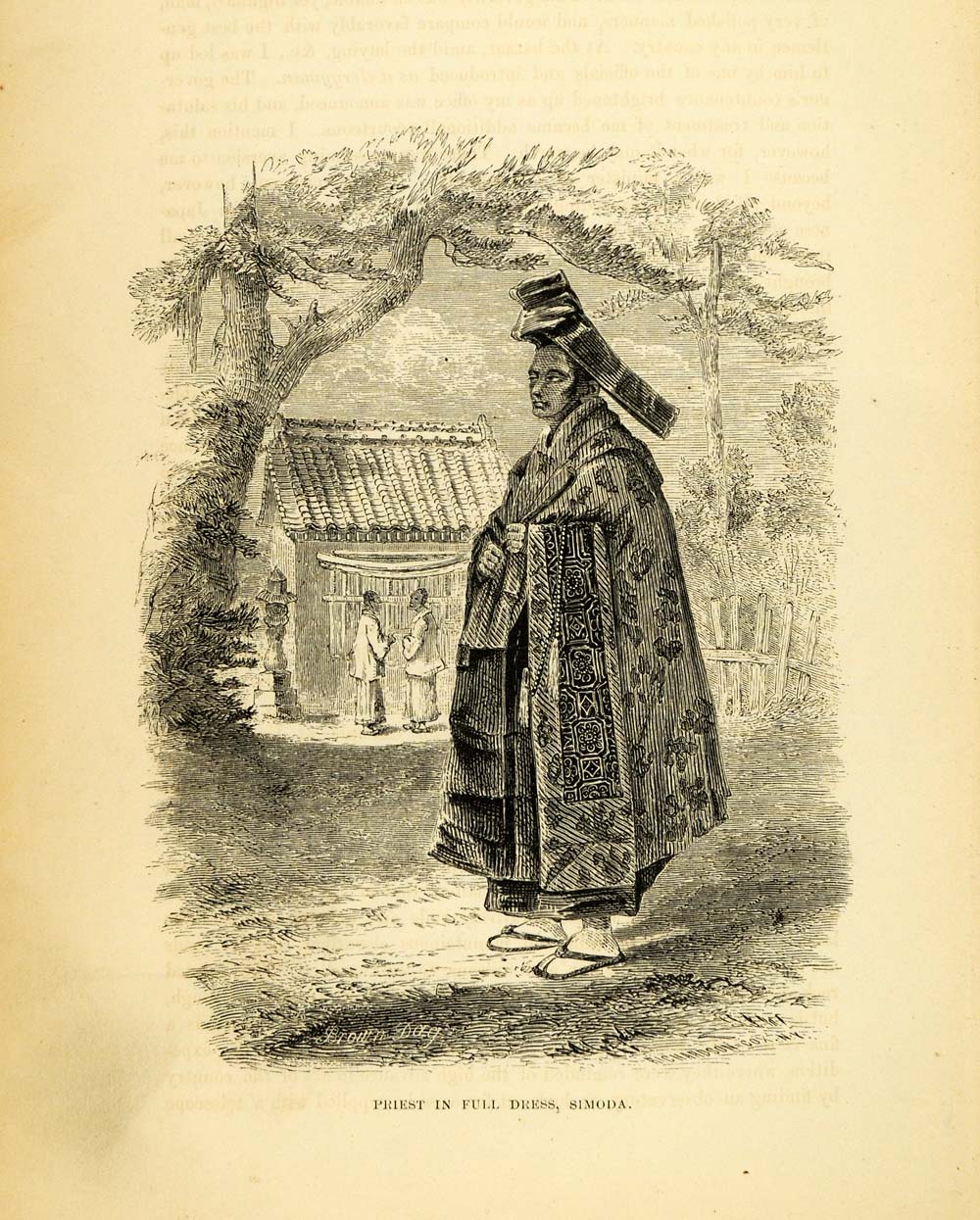 1857 Wood Engraving Priest Costume Shimoda Japan Commodore MC Perry XGA5
