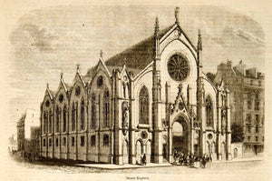 This is an original 1857 black and white in-text wood engraving that depicts the church of Sainte-Eugenie in Paris, France. The primary architect was M. Boileau.