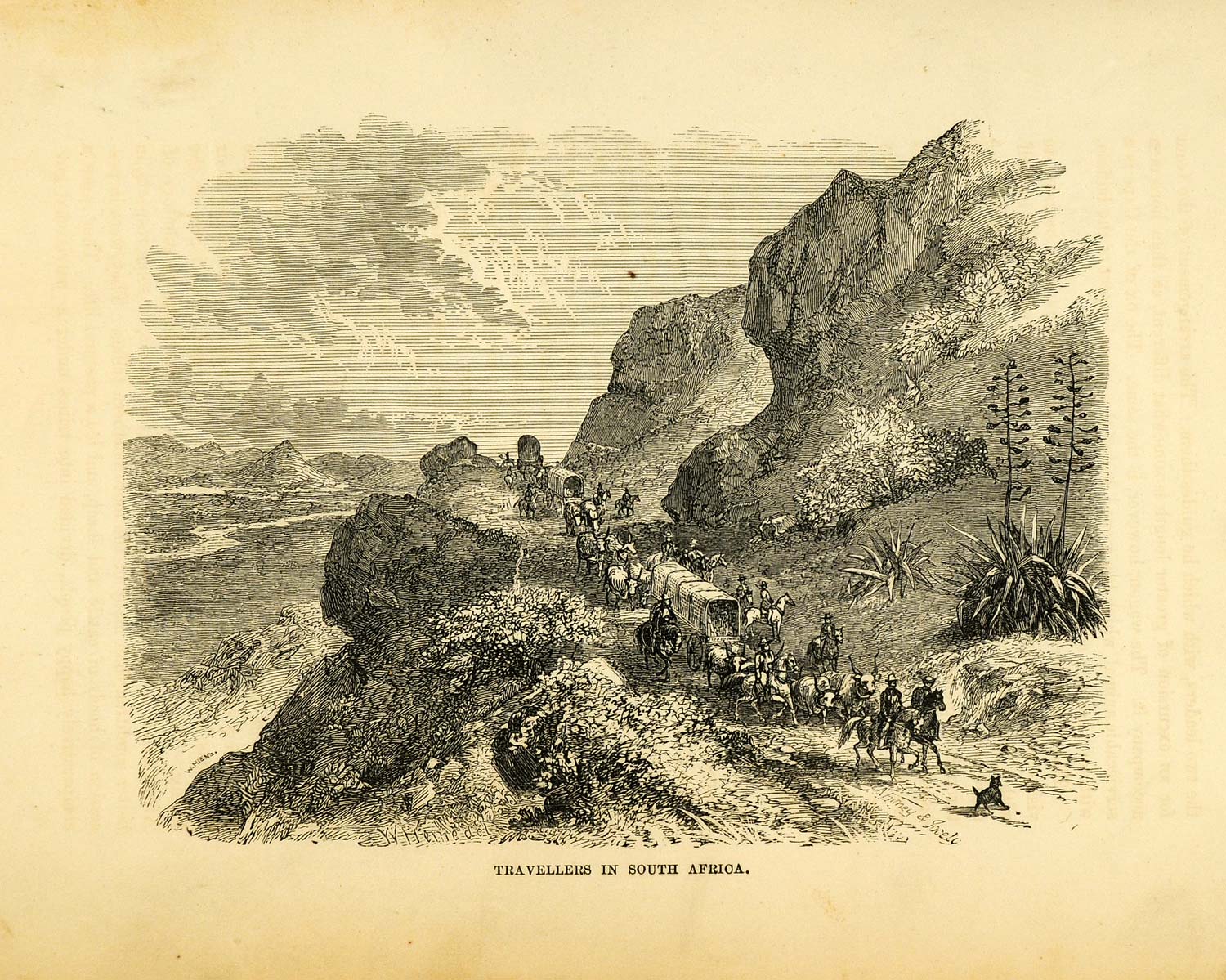 1857 Wood Engraving South Africa Traveling Caravan Commodore Perry XGA5