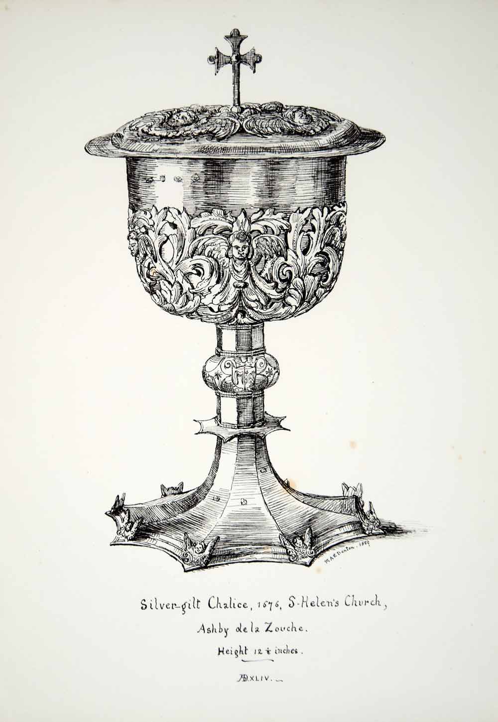 1859 Lithograph J Denton Art Chalice St Helens Church Ashby-de-la-Zouch UK ZZ4