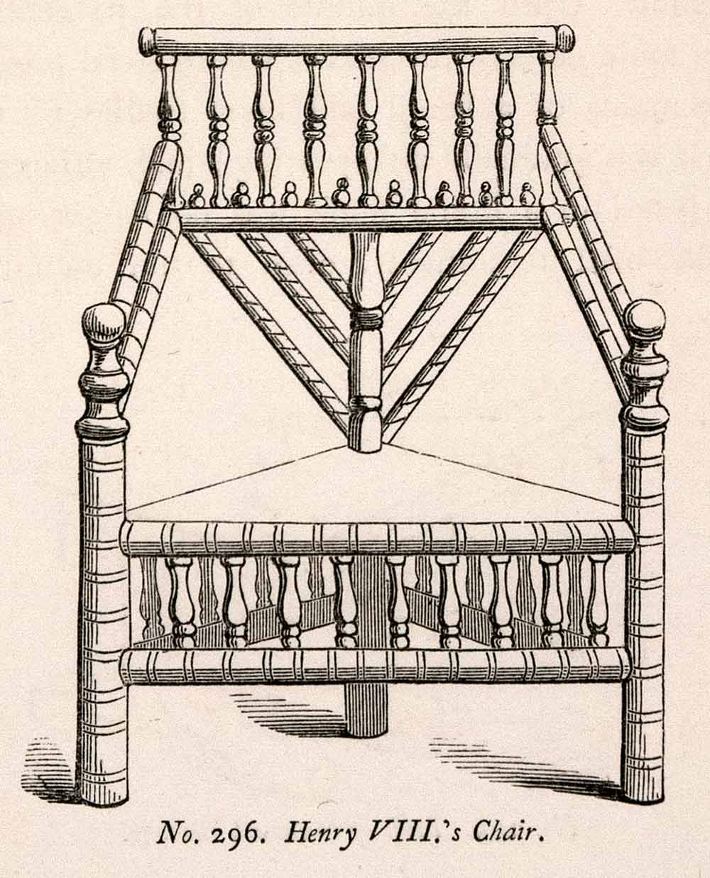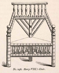 This is an original 1862 monochrome wood engraving titled "Henry VIII's Chair."