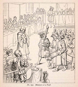 This is an original 1862 monochrome wood engraving titled "Mummers at a Feast."