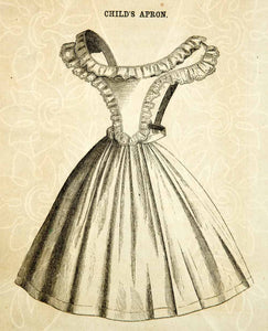 1862 Wood Engraving Victorian Apron Child Girl Antique Clothing Fashion YGLB1