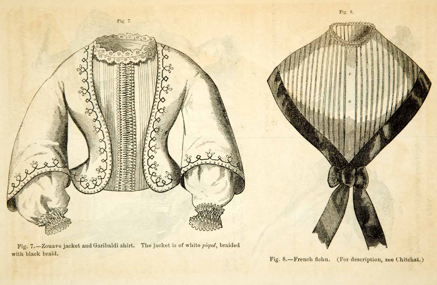 1862 Wood Engraving Victorian Lady Fashion Zouave Jacket Galibaldi Shirt YGLB1