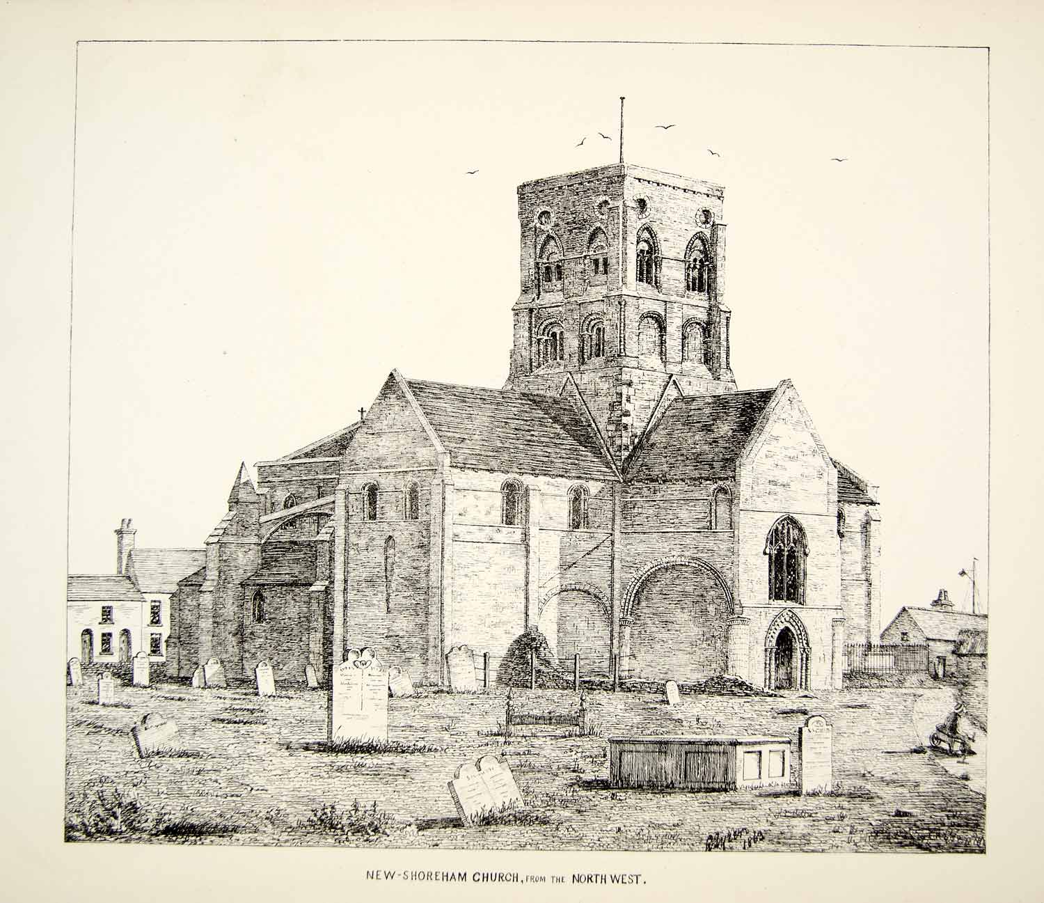 1863 Lithograph Richard Tyrer Art St Mary de Haura Church Shoreham-by-Sea UK ZZ7