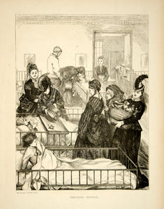 1869 Wood Engraving Art Great Ormond Street Childrens Hospital Bloomsbury YTG1