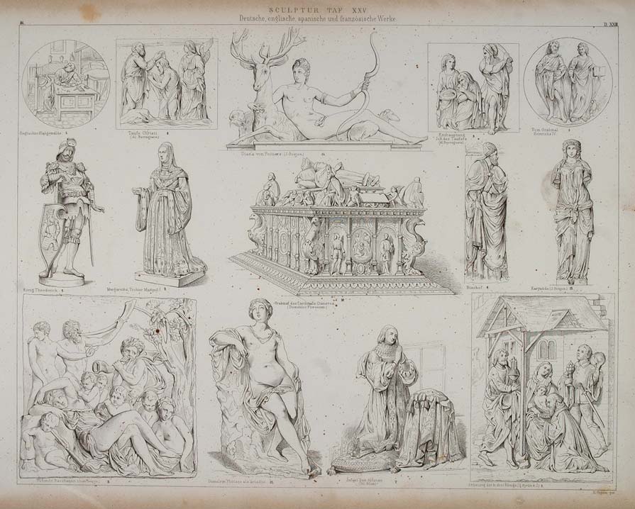 1870 Lithograph Religious Sculptures Theodorich Henry II Tomb Christ ARCH3
