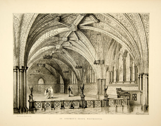 1870 Wood Engraving Saint Stephens Crypt Westminster London England YTG1