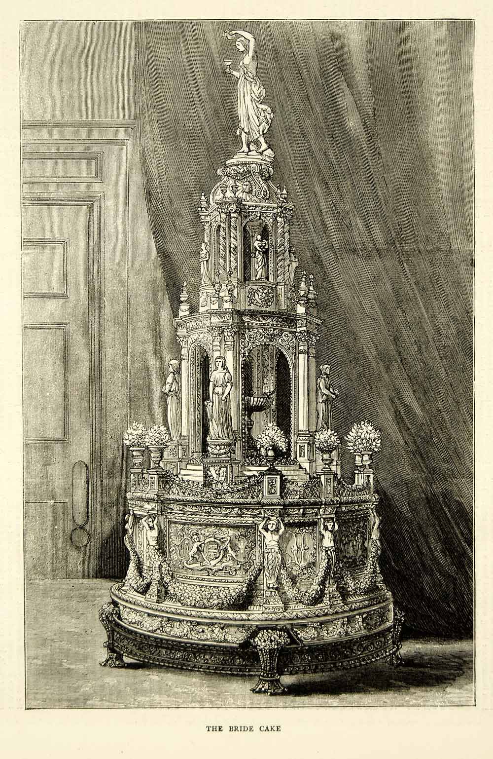 1871 Wood Engraving Art Bridal Cake Royal Wedding Princess Louise John YTG2