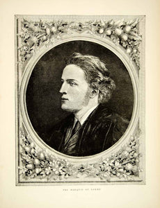 1871 Wood Engraving Art Nouveau Portrait John Campbell Marquis Lorne YTG2