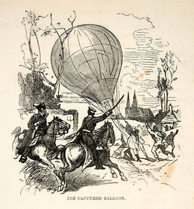 1871 Wood Engraving Balloon Franco Prussian War Calvary Hussar Military XEF7