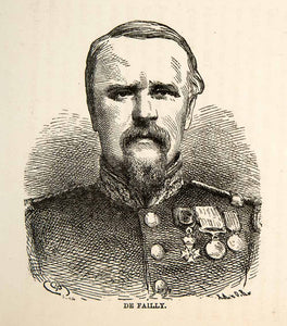 1871 Wood Engraving Charles de Failly General Franco Prussian War Uniform XEF7