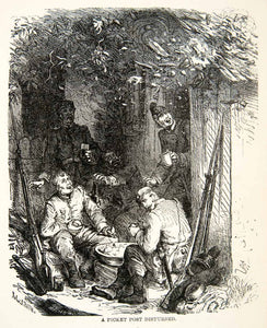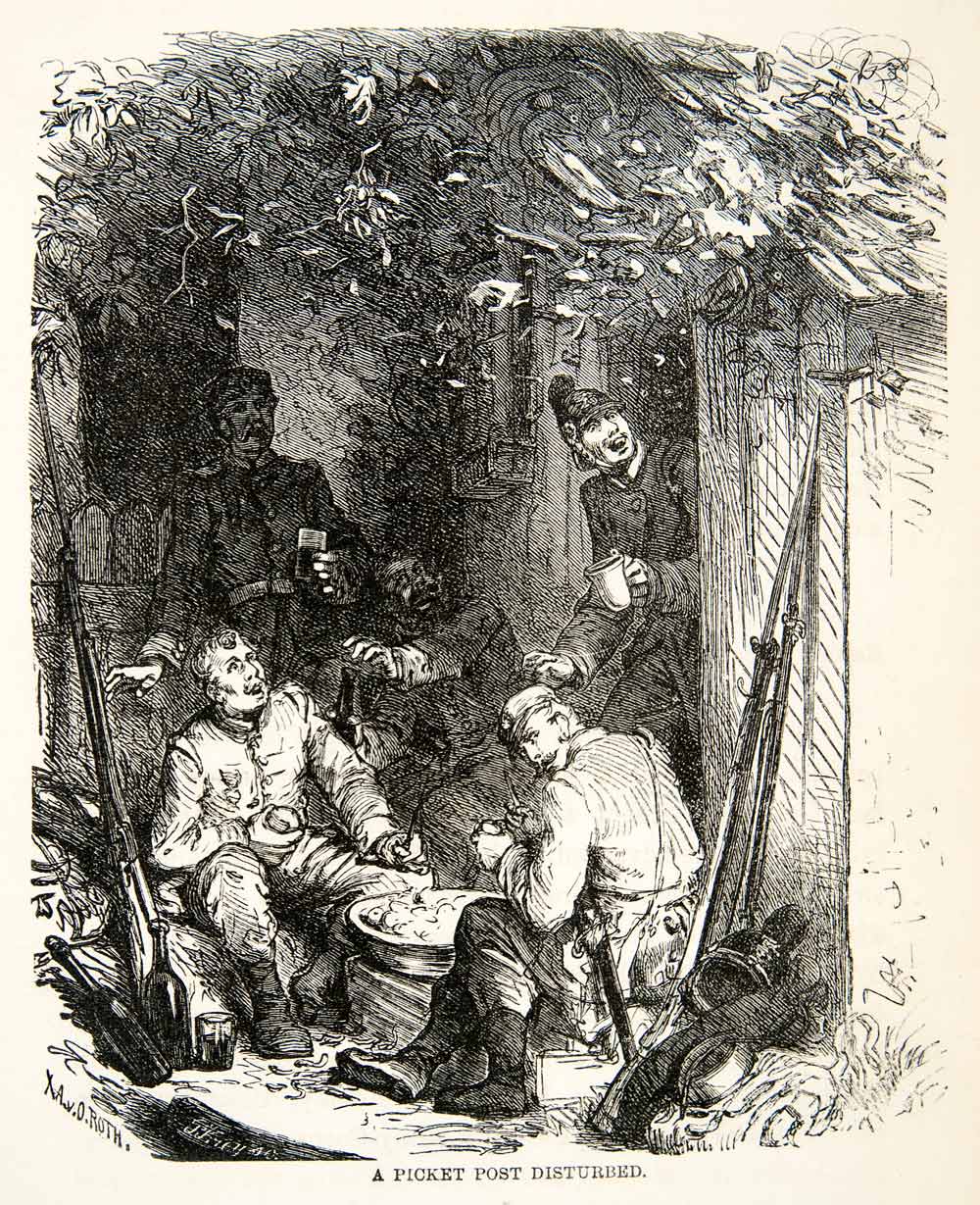1871 Wood Engraving Franco Prussian War Soldiers Picket Post Artillery XEF7
