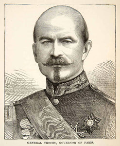 1871 Wood Engraving French General Louis Jules Trochu Governor Paris Head XEF7