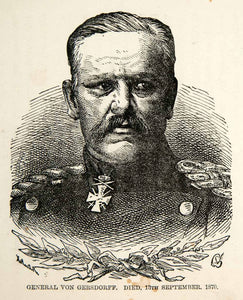 1871 Wood Engraving General Von Gersdorff Franco Prussian War Uniform XEF7