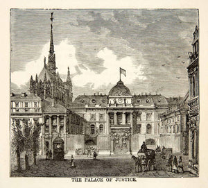 1871 Wood Engraving Palace of Justice Paris France Commune Architecture XEF7