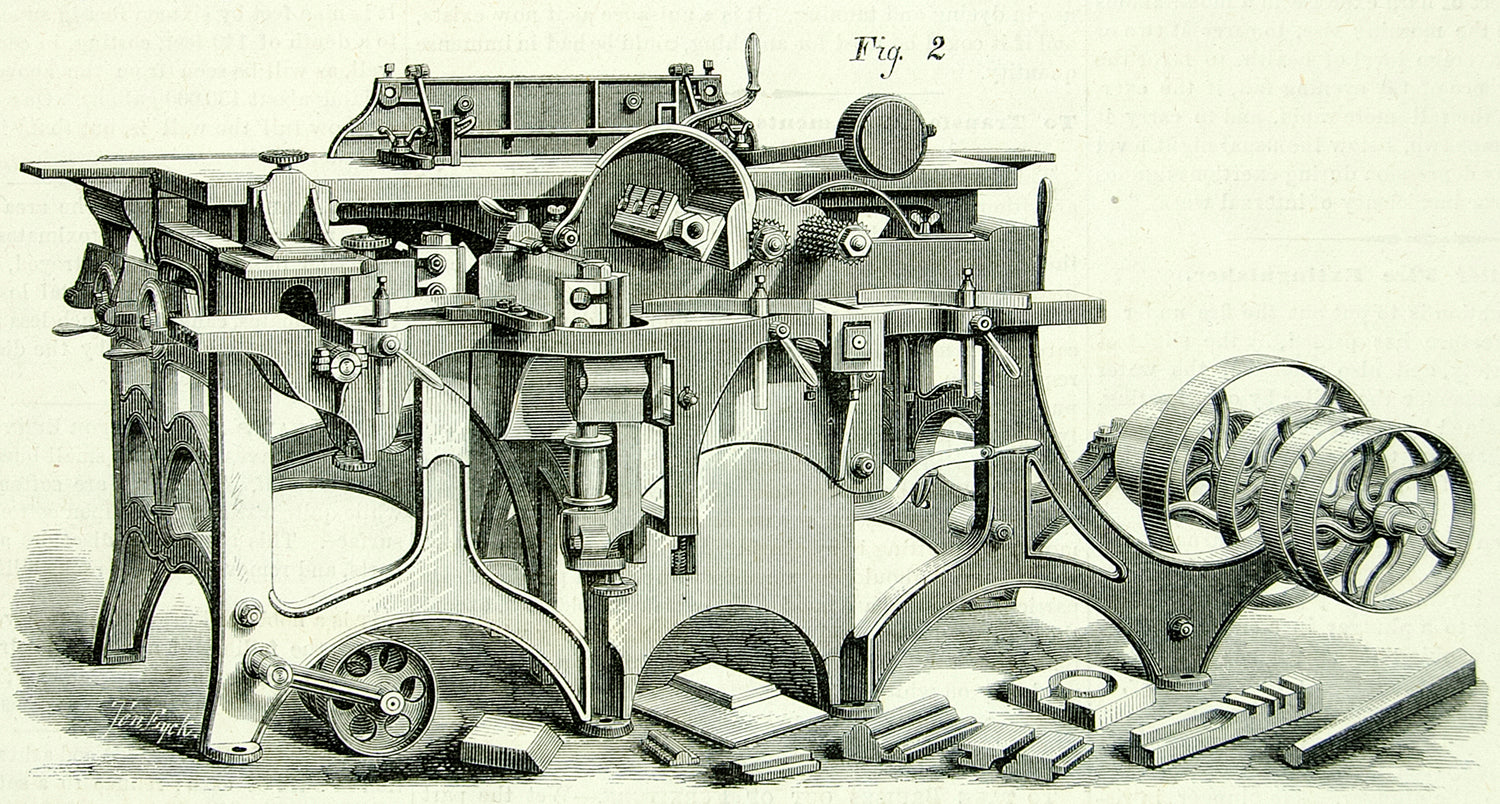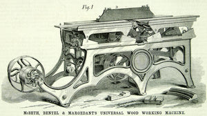 This is an original 1871 set of two black and white in-text wood engravings of the McBeth Bentel & Margedant's Universal Wood Working Machine. Please see both images.