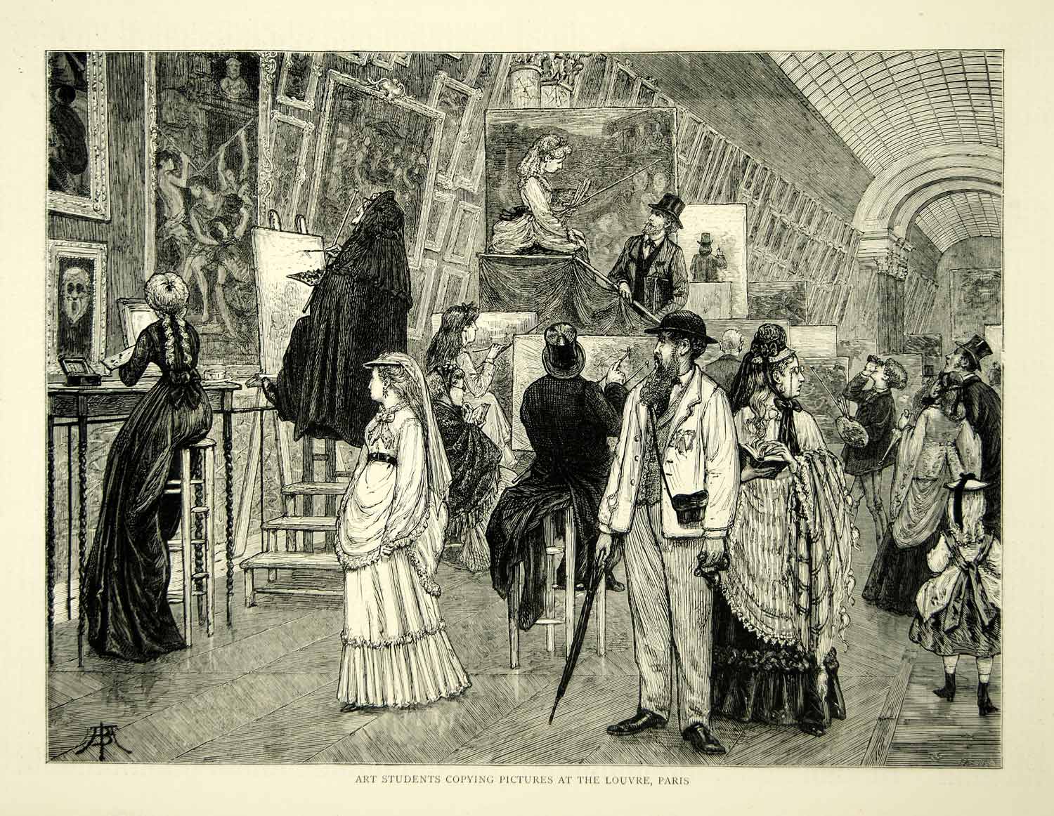 1872 Wood Engraving AB Houghton Art Students Louvre Paris France Victorian YTG4
