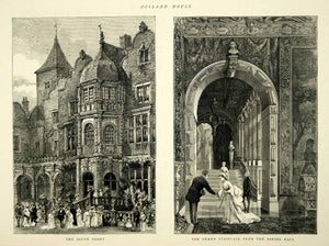 1872 Wood Engraving Art Holland House Grand Staircase Dining Hall London YTG4