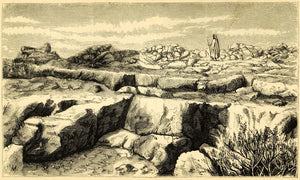This is an original 1872 black and white wood engraving of the cairns at Muweileh in Sinai, Egypt.