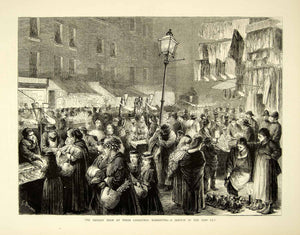 1872 Wood Engraving G Durand Art Christmas Market London England Victorian YTG3