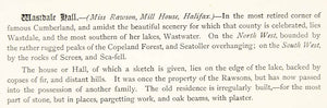 1873 Lithograph Rawson Art Wasdale Hall Youth Hostel Cumbria England UK ZZ12