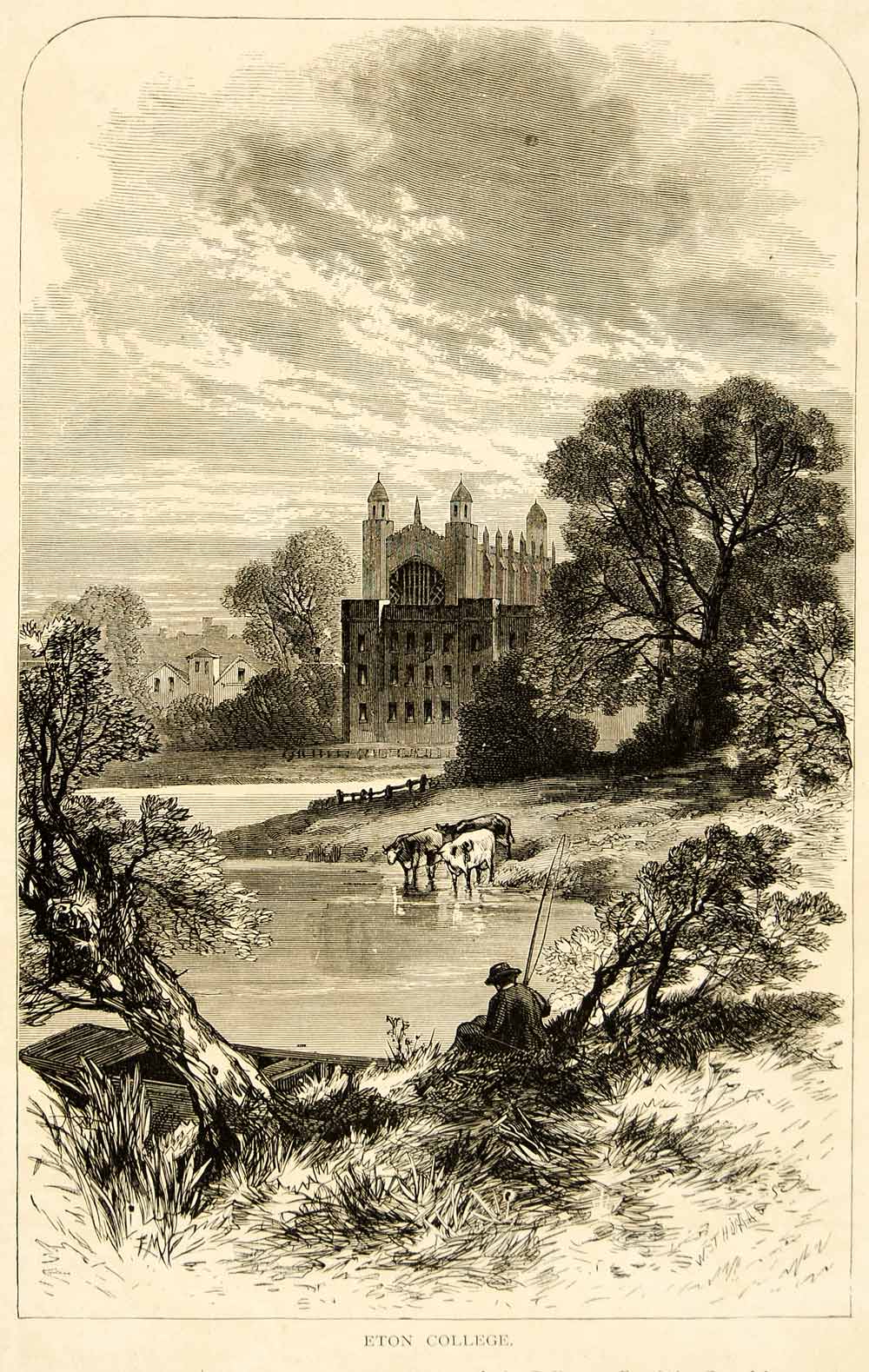 1873 Wood Engraving Art Eton College Chapel Windsor England UK University YALD1