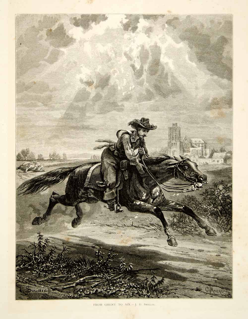1873 Wood Engraving James David Smillie Art From Ghent Aix Robert Browning YALD1
