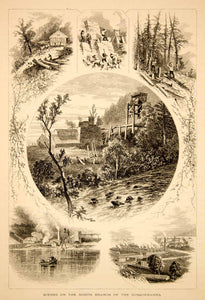 1873 Wood Engraving Susquehanna River North Branch Scenery Towns Factories YPA2