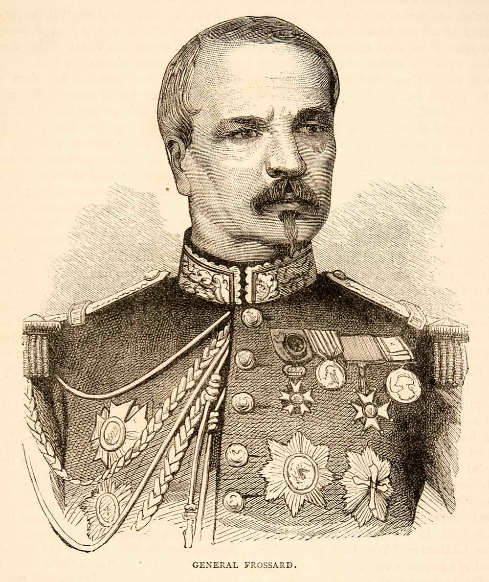 This is an original 1874 black and white in-text wood engraving portrait of Charles Auguste Frossard, who was a French General.