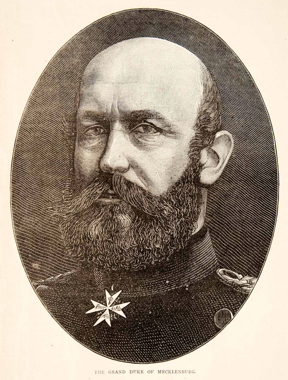 This is an original 1874 black and white in-text wood engraving Portrait of Frederick Francis II, who was the Grand Duke of Mecklenburg-Schwerin.