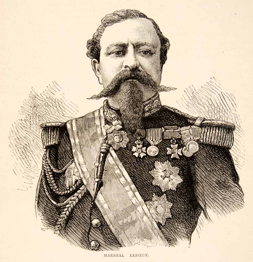 This is an original 1874 black and white in-text wood engraving portrait of Edmond Le Boeuf, who was a French Marshal.