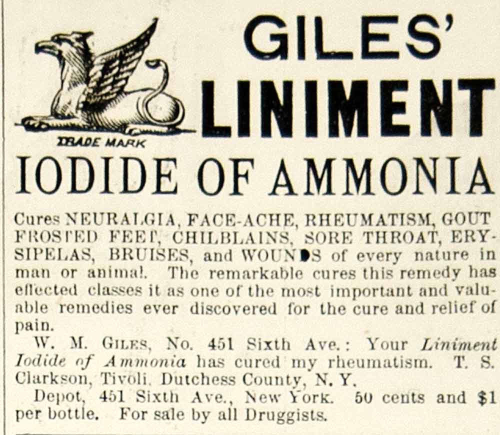 1875 Ad Antique Giles' Liniment Iodide of Ammonia Medical Quackery Cure Medicine