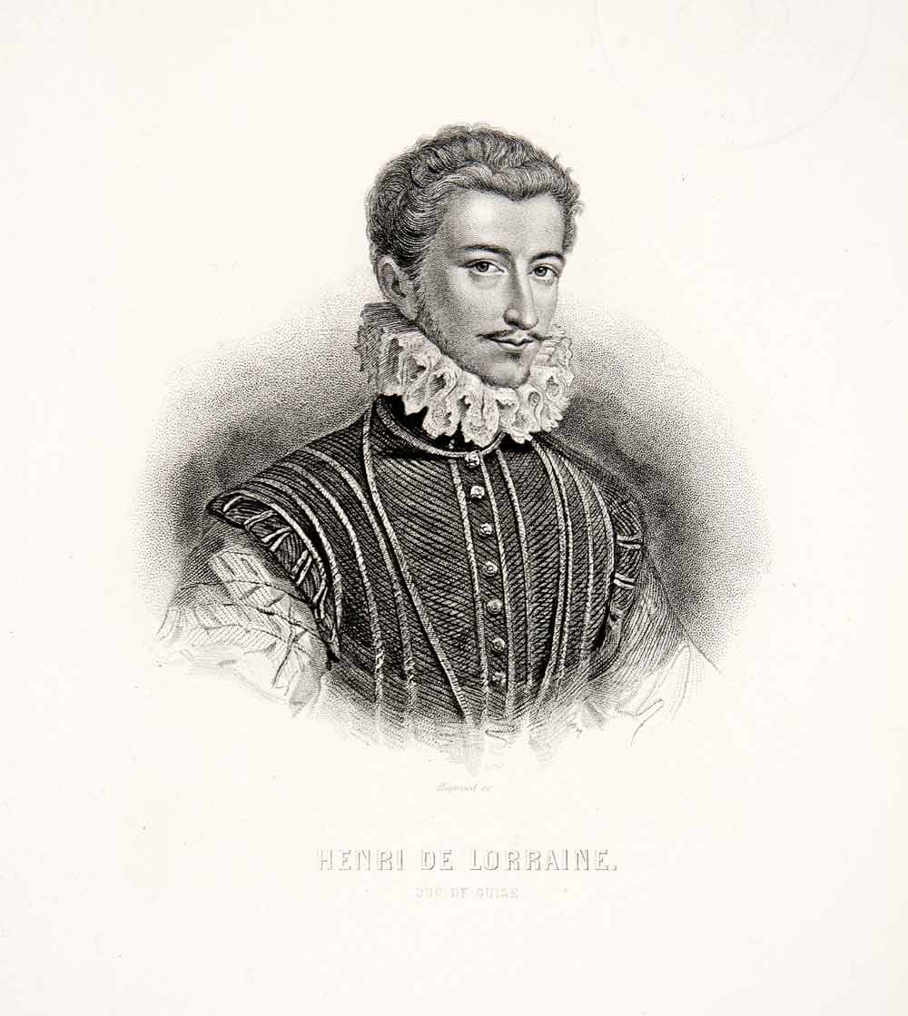 1875 Steel Engraving Henri Henry II Lorraine Duc Guise Ruff Clothing XEA6