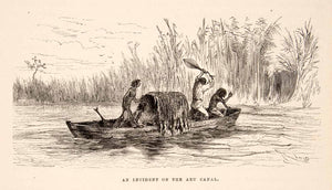 This is an original 1875 black and white wood engraving of a traveler beating his steersman with an oar after the native refused to obey and order to continue paddling through the Aru Canal in Brazil. As it has been said, "the beatings will continue until morale improves".