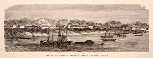 Keywords specific to this image: Rainforest, Town, Skyline, Vista, Beach, Shore, Bank, Jungle, Tropics, Landscape, Panorama, Rio, Boat, Canoe, Dinghy