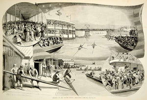 1875 Wood Engraving Harlem Rowing Regatta Boat Race Sculling Rowing Spectators