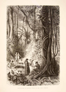 Keywords specific to this image: Amazon, Rainforest, Natives, Priest, Jungle, Campfire, Vine, Curare, Boil, Weapon, Canopy, Foliage, Outdoors, Nature, Trees, Traveler