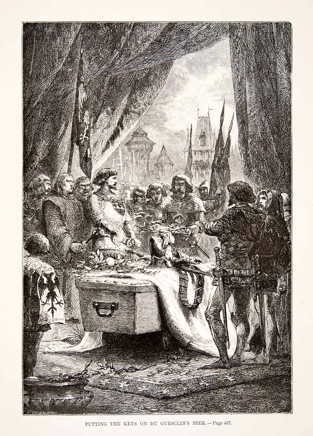 1875 Woodcut Alphonse Neuville Bertrand Guesclin Bier Coffin Hundred Years XEA6