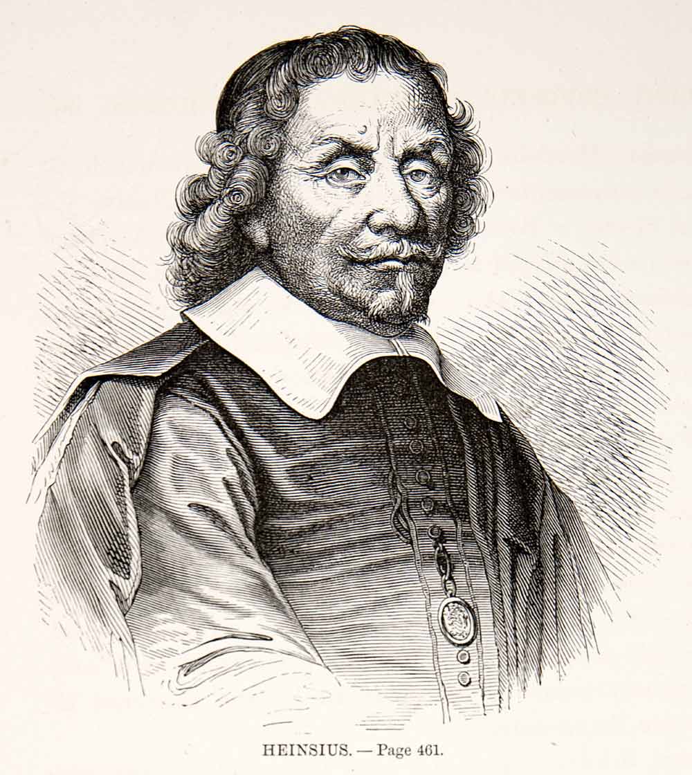 1875 Woodcut Alphonse Neuville Daniel Heinsius Dutch Renaissance Portrait XEA6