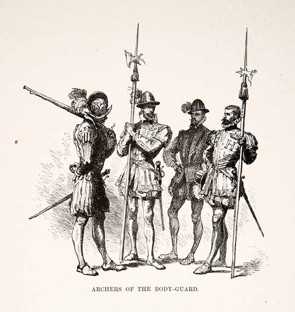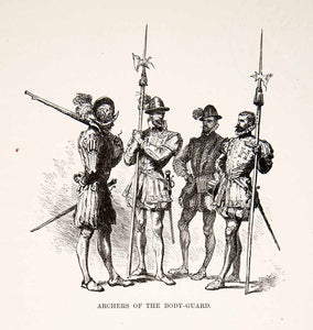 1875 Woodcut Alphonse Neuville Guard Halberd 16th Century France Solider XEA6