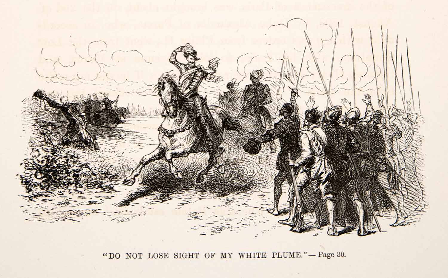 1875 Woodcut Alphonse Neuville Henry IV Battle Ivry Mount Troops Wars XEA6