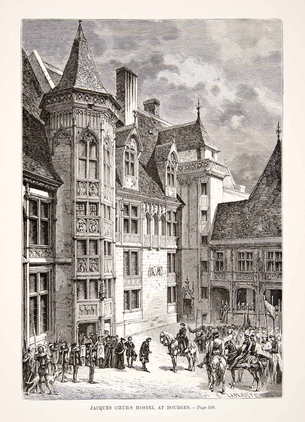 1875 Woodcut Alphonse Neuville Jacques Coeur Bourges Hostel Architecture XEA6