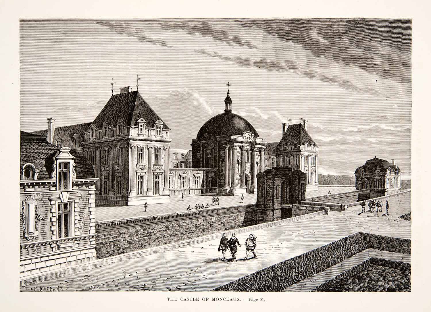 1875 Woodcut Castle Monceaux Chateau Seine-et-Marne Historical Residence XEA6