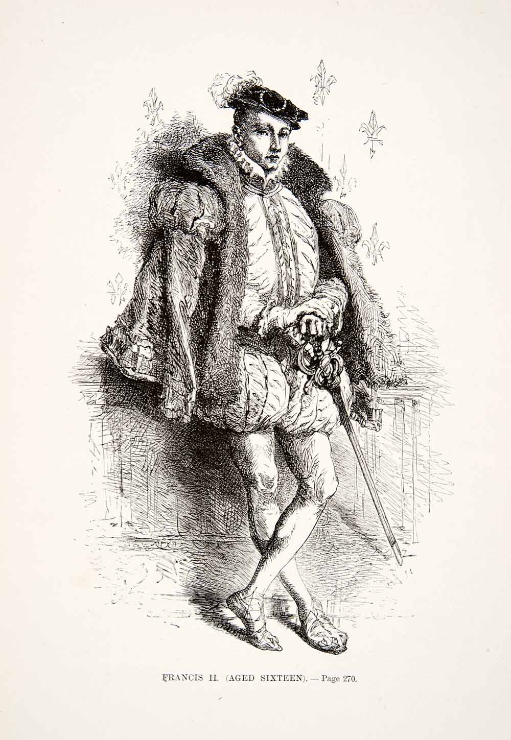 1875 Woodcut Francis II Portrait Alphonse Neuville Hose France 16th Century XEA6